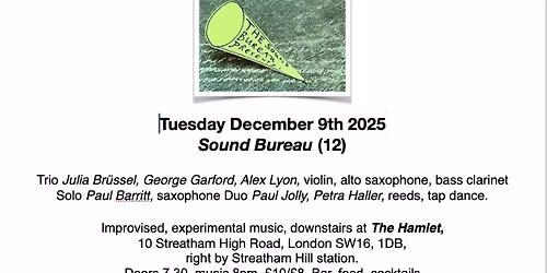 Sound Bureau (12) presents: Brüssel/Garford/Lyon + Jolly/Haller + Barritt