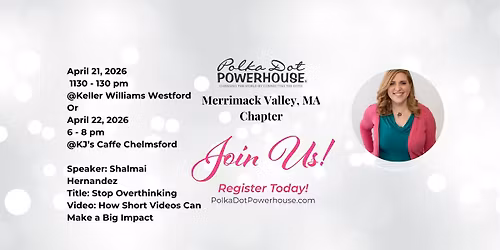 Follow Polka Dot Powerhouse-Merrimack Valley, MA ChapterIt is our mission to connect the world's most positive, action-forward, amazing women to build lifelong friendships and business relationships.