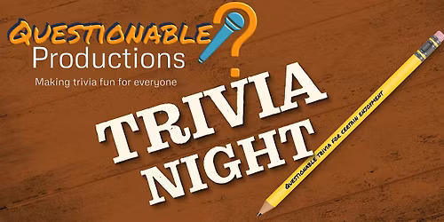 Follow Questionable ProductionsTrivia byQuestionable Productions: We put on the best pub quiz nights in Utah! (Doubtful? Checkout City Weekly's 'Best of...' trivia category!). We provide a fresh mix of topics each night, custom-written for maximum enjoyment of all. Gather your friends and join us tonight! Get ready to test your knowledge and have a blast!