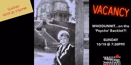 WHODUNNIT...on the 'Psycho' Backlot?! on SUNDAY 10/19 at 7:30pm at Cinema Salem!