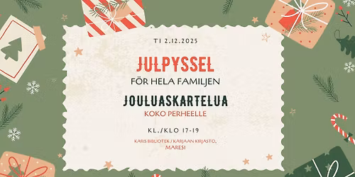 Julpyssel för hela familjen på Karis bibliotek / Jouluaskartelua koko perheelle Karjaan kirjastossa