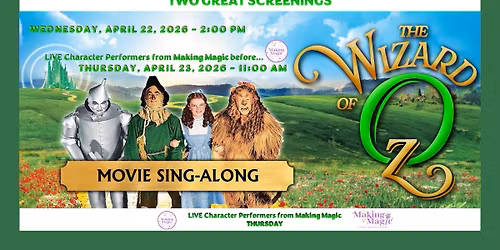 Sing-Along WIZARD OF OZ - Lyrics on the BIG Screen - Meet "Dorothy" Before Screenings! 4-22 & 4-23