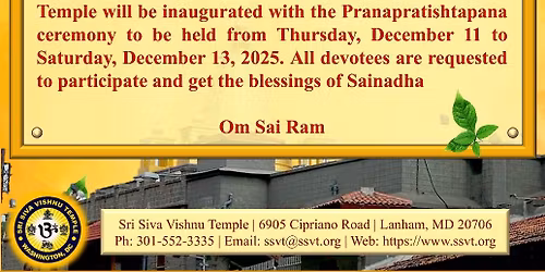 Get SSVT - Sri Siva Vishnu Temple DC Event Updates