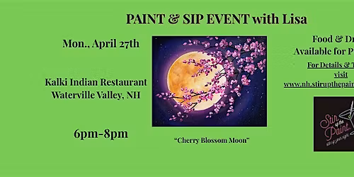 Follow Stir Up the Paint New HampshireLisa has been a paint & sip instructor since 2014 and always enjoyed providing training and instruction to adults. This event is geared for adults to take some time out of their busy lives for themselves and CREATE ART! She truly believes that anyone can be taught to paint and this event is geared toward beginners and novices who want to relax and have fun! Lisa will instruct you with brush techniques, and emphasizes that you enjoy the process of painting and enter that zone of CREATIVITY, where anything is possible!Making ART, whether it's painting, crafting, knitting, wood working, drawing, writing, dancing, etc. is GOOD FOR THE SOUL! Being good at it is not a requirement. It's ok to do something badly because anyone can learn technique. It's the process of CREATING that brings us joy and peace, something we all need right now in life.So join Lisa, grab a brush (and a cocktail if you wish!), and let's make some ART!