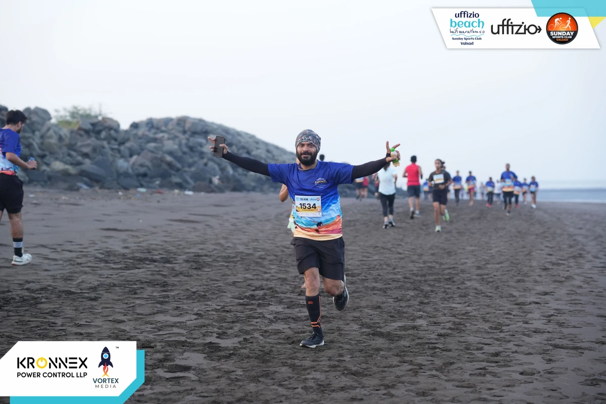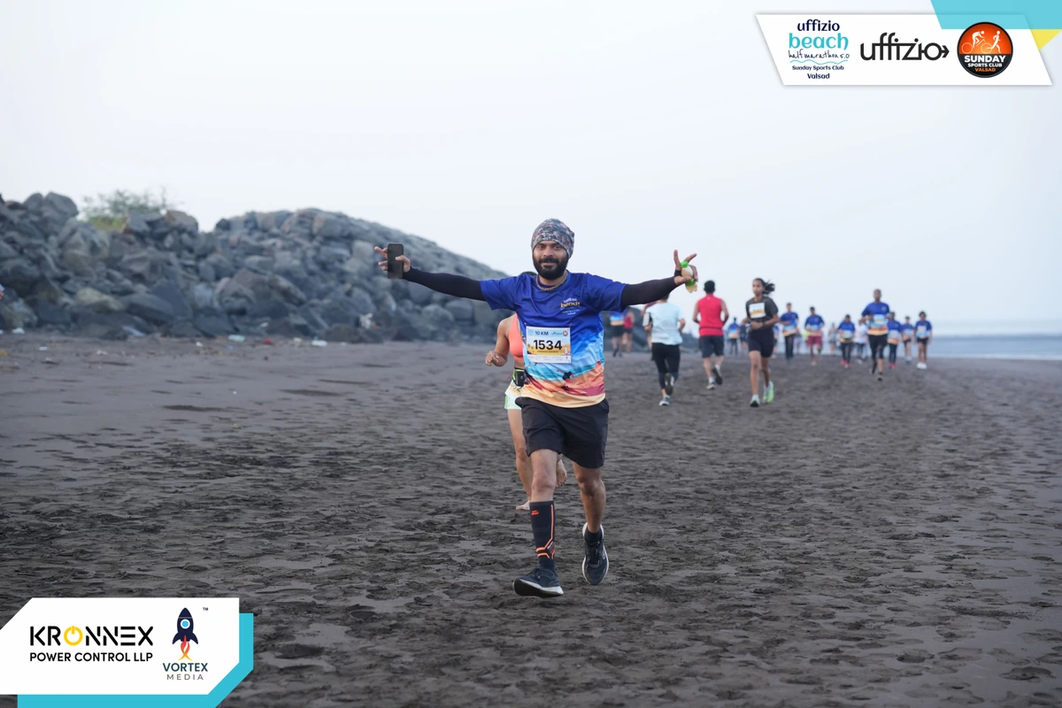 “A Scenic Yet Challenging Race Experience The Gujarat First Beach Marathon was a truly breathtaking experience, set along the stunning coastline, offering runners a mix of beauty, challenge, and endurance. Running entirely on the beach added a unique element, making it a powerful test of strength and stamina while being surrounded by the serene sound of waves and a picturesque sunrise. Race Course & Challenge The full 21.1km course on sand was both beautiful and demanding. Running on loose sand, occasional wet patches, and battling the wind made it a true test of endurance. Unlike road marathons, this required extra effort in foot placement, balance, and pacing. However, these challenges only made crossing the finish line even more rewarding. This is not just a race but an adventure, pushing runners to their limits in the most scenic way possible. Organization & Hydration Support One of the highlights of this event was the excellent organization. From race kit distribution to on-course management, everything”