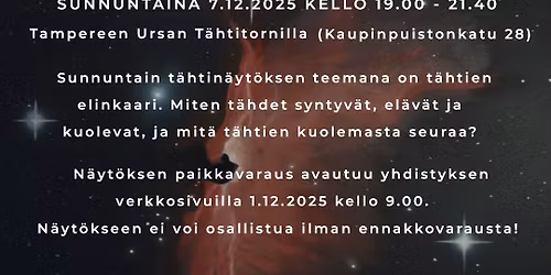 Sunnuntain tähtinäytös: Tähtien elinkaari