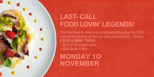 TASTY TRIVIA - the deliciously interactive food & drink quiz event.Our questions will cross over into other areas - geography, history, science, current affairs + YOU KNOW MORE THAN YOU THINK YOU DO! Join us for a night of Free Foodie Fun!