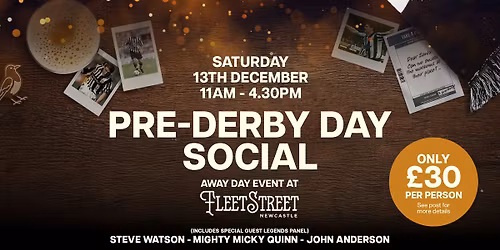 PRE-DERBY DAY SOCIAL - Saturday 13th December - 11am - 4.30pm