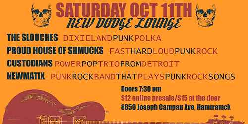 The Slouches, Proud House of Shmucks, Custodians, & Newmatix at New Dodge Lounge
