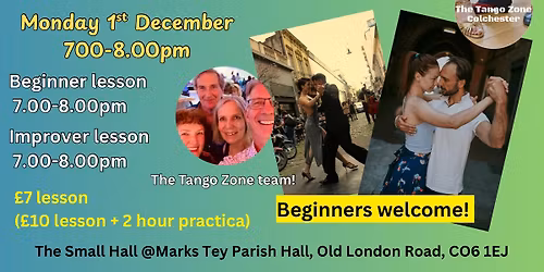 Argentine tango lessons for beginners & improvers at Marks Tey Parish Hall