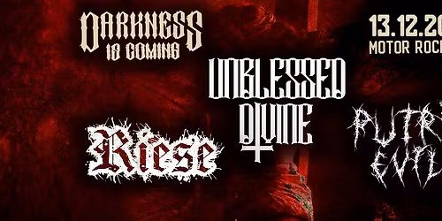 DARKNESS IS COMING: Unblessed Divine (Death Metal) + Riese (Death Metal) + Putrid Evil (Death/Grind)