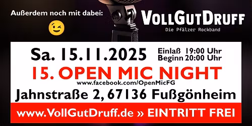 15. Open Mic Night mit "VollGutDruff | Die Pfälzer Rockband"