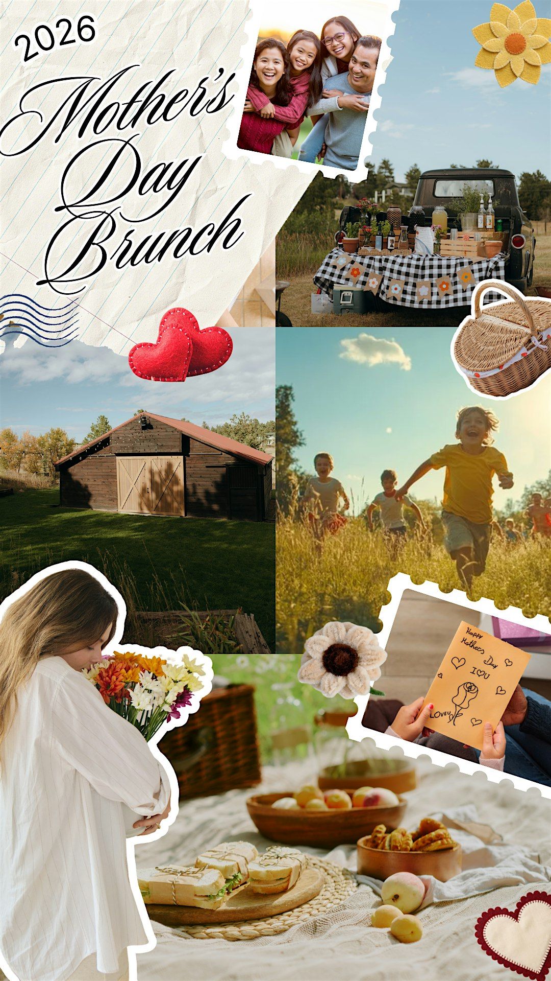 - **Event Description**: Celebrate Mother’s Day with a relaxed &amp; beautiful morning. Choose between a picnic basket or family-style table brunch + lots of fun extras!About this EventSkip the crowded restaurants this year and celebrate Mother’s Day somewhere that actually feels special. Enjoy brunch on the grounds at Arrowhead Acres, with fresh air, beautiful surroundings, and thoughtful touches designed to make the morning feel easy and memorable for the whole family.Choose Your Brunch ExperienceThis Mother’s Day, celebrate with a relaxed and beautiful morning at Arrowhead Acres. Guests can choose between two unique brunch experiences designed to make the day feel special, easy, and memorable for the whole family. Soft background music, open space to explore, and thoughtful touches throughout the property create an atmosphere where families can slow down, connect, and celebrate mom together.The Meadow Picnic$40 per portion through websiteFor a relaxed and carefree option, reserve a thoughtfully prepared picnic basket brunch and enjoy your meal anywhere on the grounds.Spread out a blanket or settle into one of our picnic areas while enjoying a preset menu created by , a beloved Denver brunch favorite known for their elevated comfort food.Each basket includes a curated selection such as:• a pinwheel sandwich (like a Monte Cristo)• fresh fruit salad• deviled egg• a sweet dessertIt’s a simple, charming way to enjoy brunch outdoors while kids play and families take in the beauty of the property.The Gathering Table$65 seat at the Gathering Table through websiteFor a more elevated experience, reserve a seated family-style brunch table where your group can enjoy a shared meal together.Your table will feature a beautiful spread created by , including:• warm biscuits with jam, honey butter, and gravy• deviled eggs• fresh fruit salad• savory potato hash• dessertTables are thoughtfully styled with pieces from , creating a welcoming and relaxed setting perfect for celebrating Mother’s Day together.Add-On Experiences📸 Family Portrait Mini SessionsCapture a beautiful memory from the day with a quick 5-minute family portrait by Wild Roots Photography.Includes three professionally edited images. $35 per sessionAs a special bonus, attendees will also receive 25% off a future full family session with 🌸 Bloom BarLet mom design her own bouquet at our Bloom Bar hosted by Grace in Bloom Floral Design. Choose from seasonal stems and greenery to create a fresh arrangement to take home.$45 per bouquetFun For the Little OnesKids can visit our complimentary card-making station to create something special for mom, and enjoy simple outdoor play with bubbles, hula hoops, and lawn games throughout the morning.It’s a day designed to give mom something rare — the chance to relax and truly enjoy the moment.