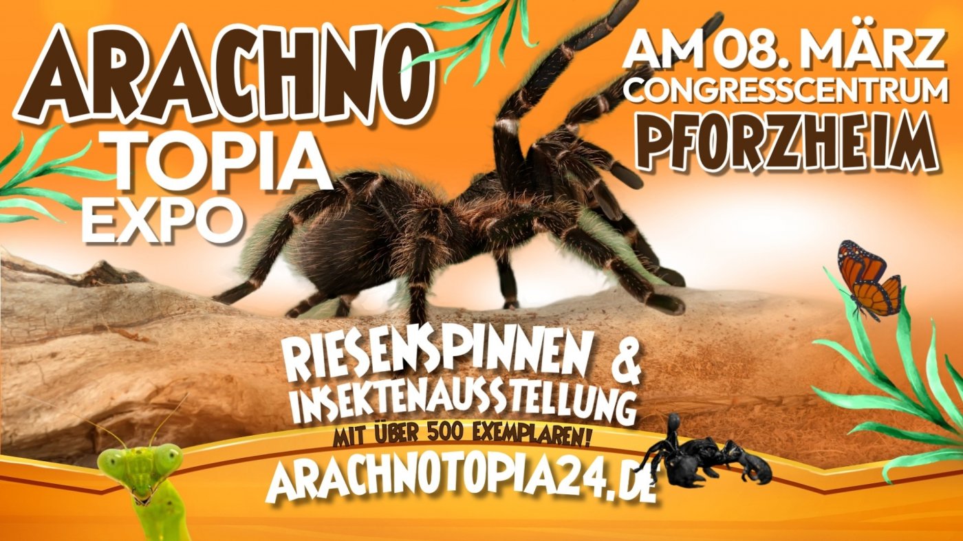 Faszinierende Welt der Spinnen & Insekten Am 08. März 2026 gastiert die außergewöhnliche Spinnen- und Insektenausstellung im CongressCentrum Pforzheim. Besucherinnen und Besucher erhalten die Gelegenheit, die faszinierende und oftmals unbekannte Welt der Wirbellosen aus nächster Nähe zu entdecken. Die Ausstellung präsentiert über 500 lebende und präparierte Exemplare aus aller Welt und bietet einen umfassenden Einblick in die Vielfalt, Lebensweise und ökologische Bedeutung dieser Tiergruppe. Zu sehen, Pforzheim, Germany