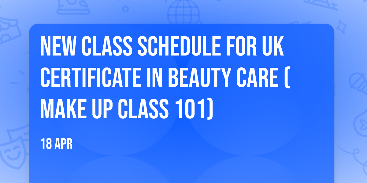 New Class Schedule for UK Certificate in Beauty Care (Make Up Class 101)