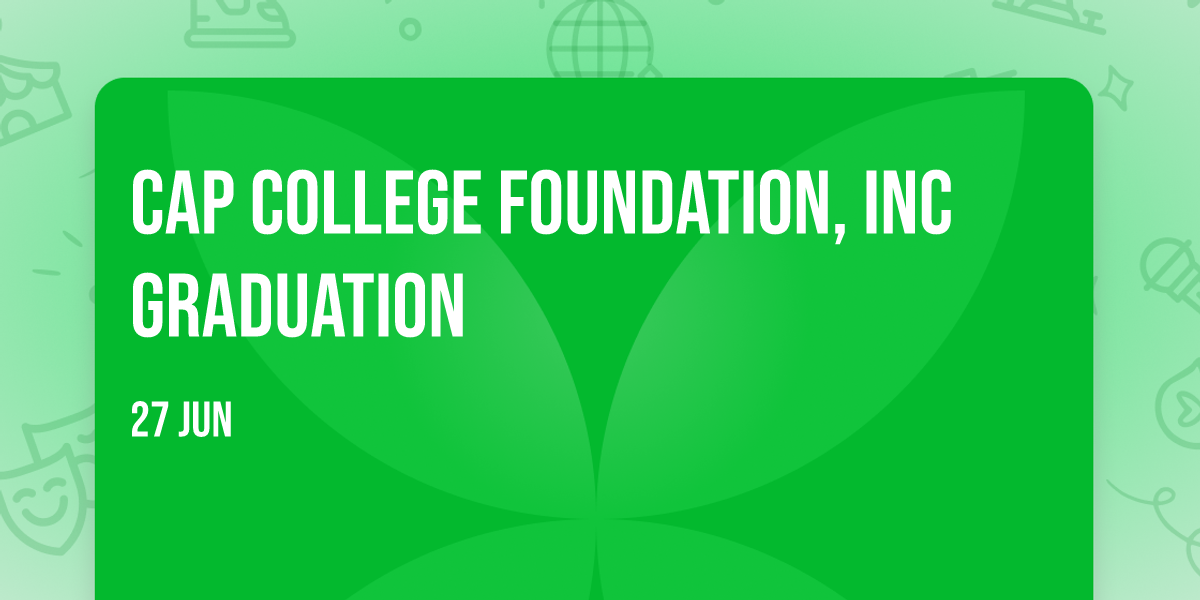 CAP College Foundation, Inc GraduationSat, 27 Jun at 01:00 pmUMak Performing Arts Theater, 6th Level, Administration Building, UMak Campus, Pateros, Philippines
