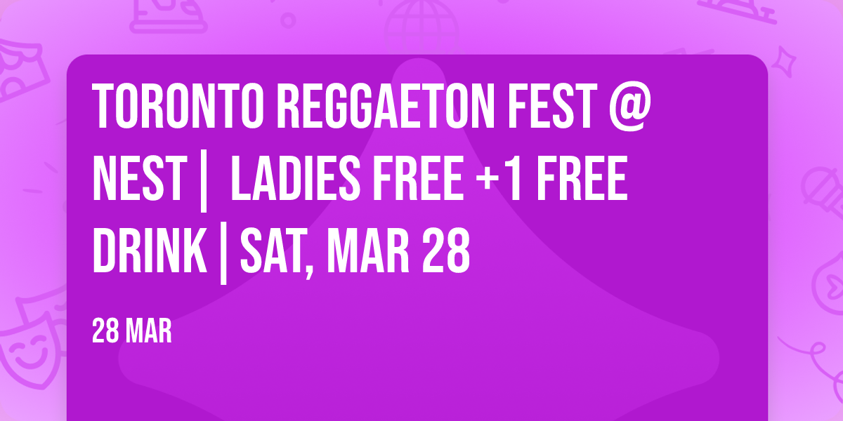 TORONTO REGGAETON FEST @ NEST| LADIES FREE +1 FREE DRINK|SAT, MAR 28
