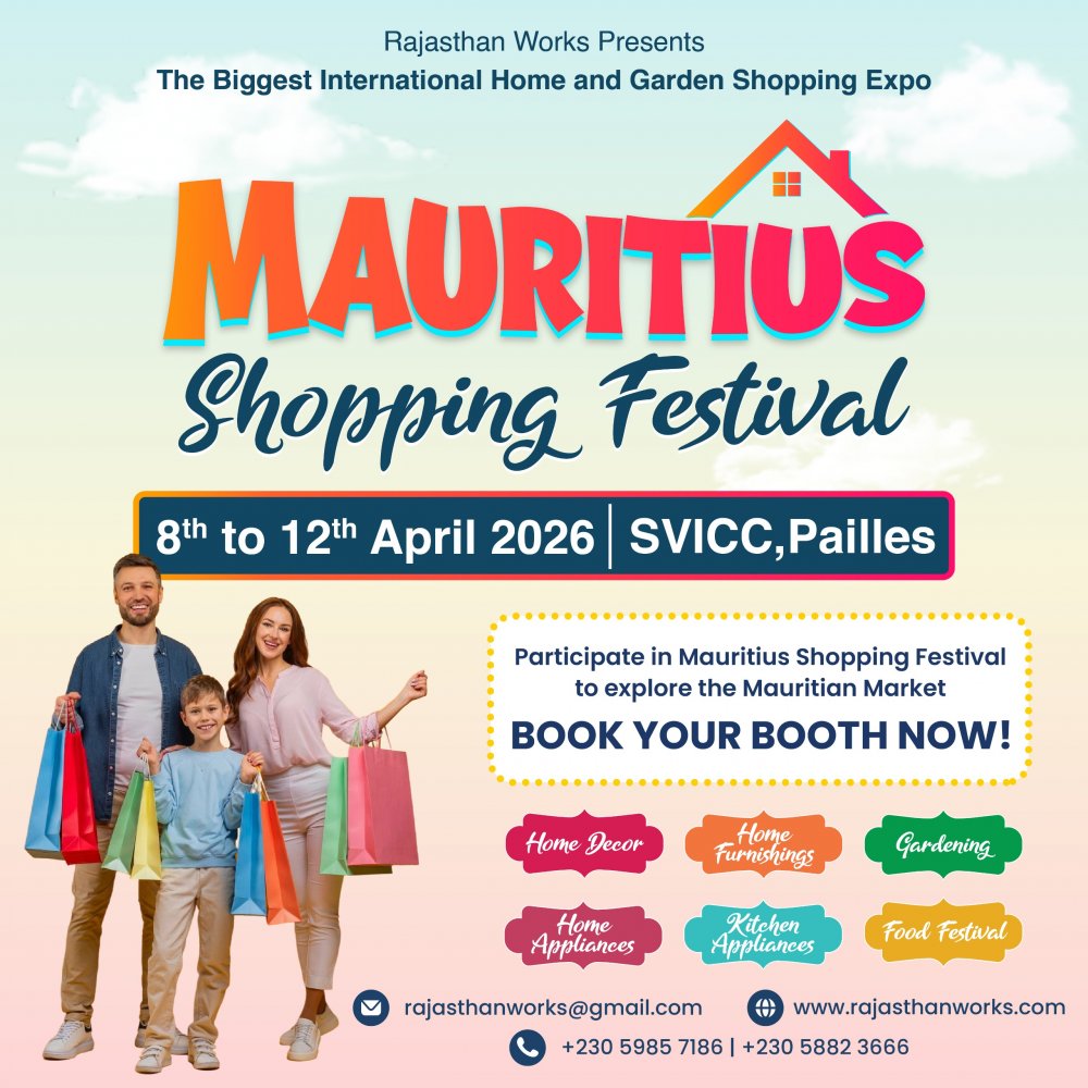 From April 8th to 12th, experience the Biggest International Shopping Expo at SVICC Pailles. Showcase your products and join the excitement of late-night shopping, cultural showcases, live performances, and food festival.