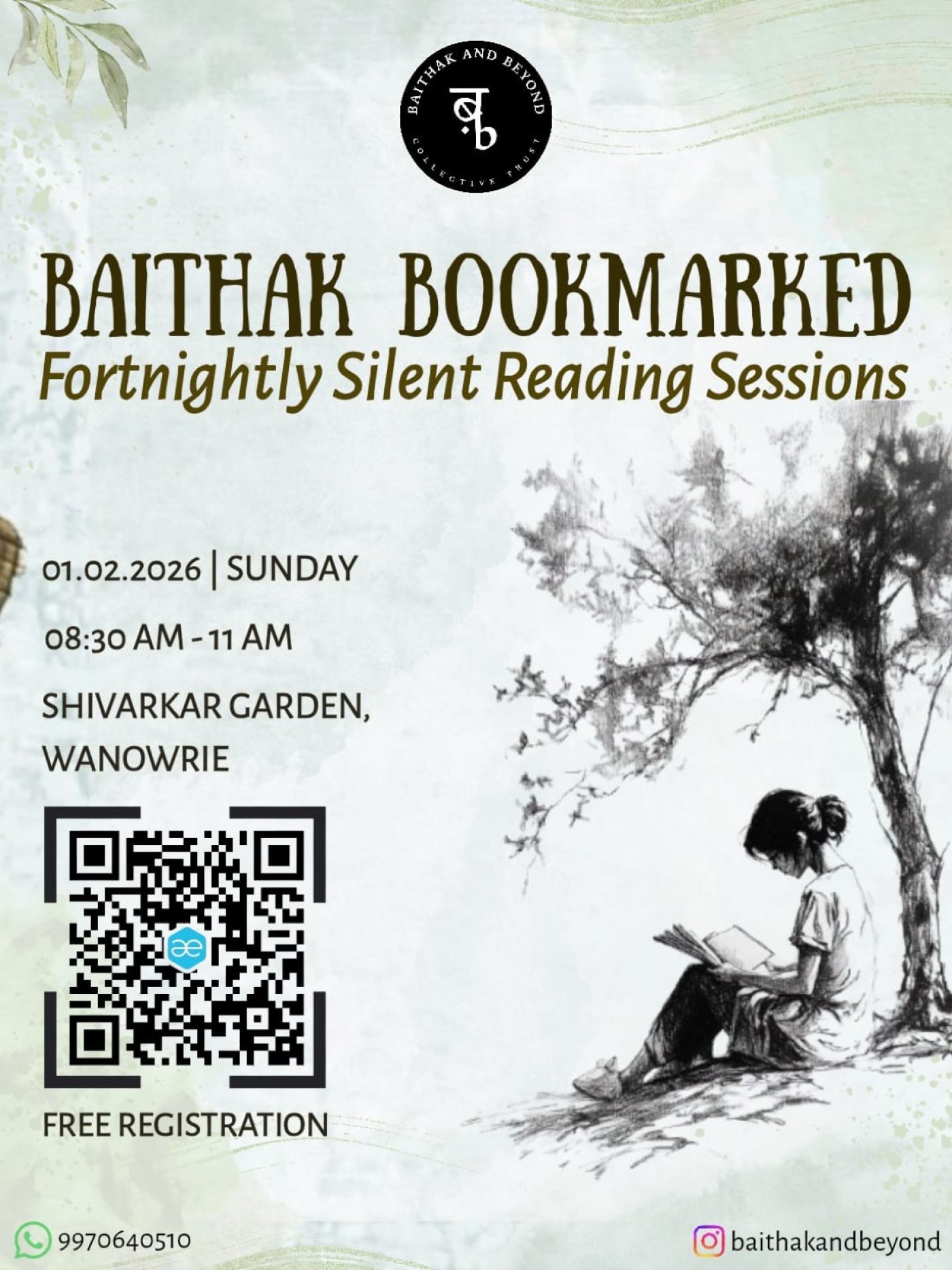 Baithak and Beyond invites you to its second iteration of BOOKMARKED, a fortnightly silent session of reading books in solace and quiet.