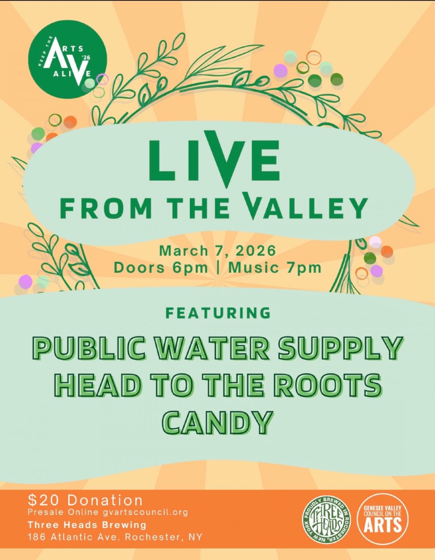 Enjoy Head to the Roots, Public Water Supply, and Candy—all from Rochester!