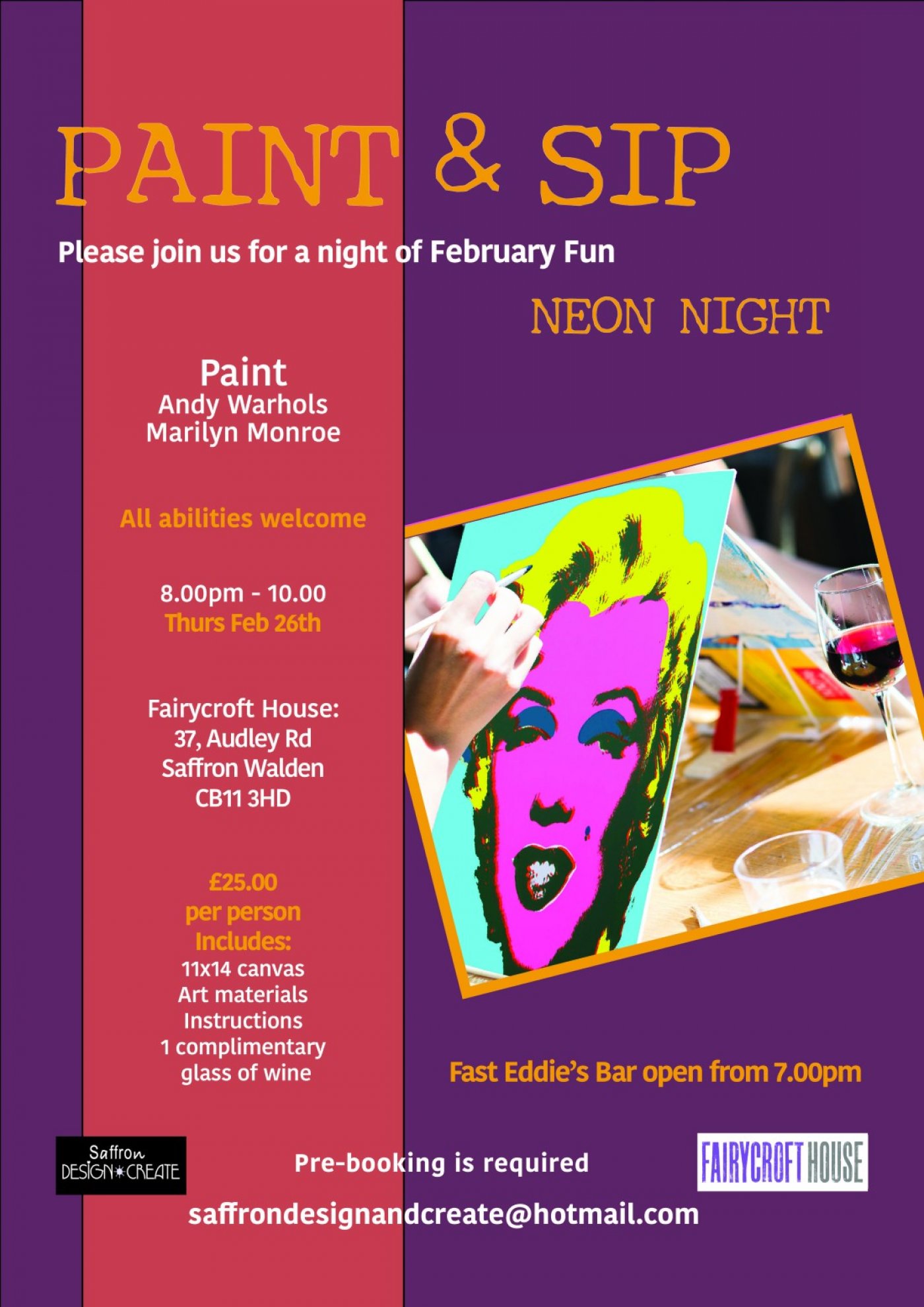 Paint a Marilyn Monroe portrait Andy Warhol style at Fairycroft House