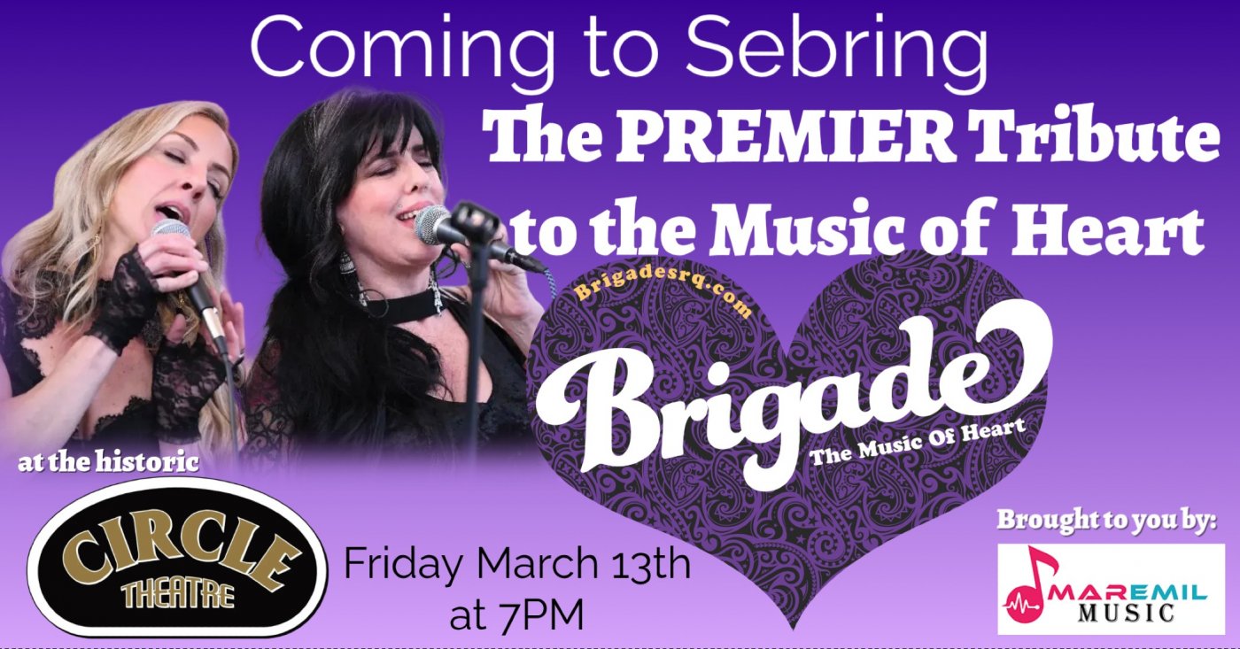 Coming to The historic Circle Theater in Sebring: Brigade - the music of Heart. The premier tribute to Heart Friday March 13th starting at 7PM. Get ready for an AMAZING tribute experience!