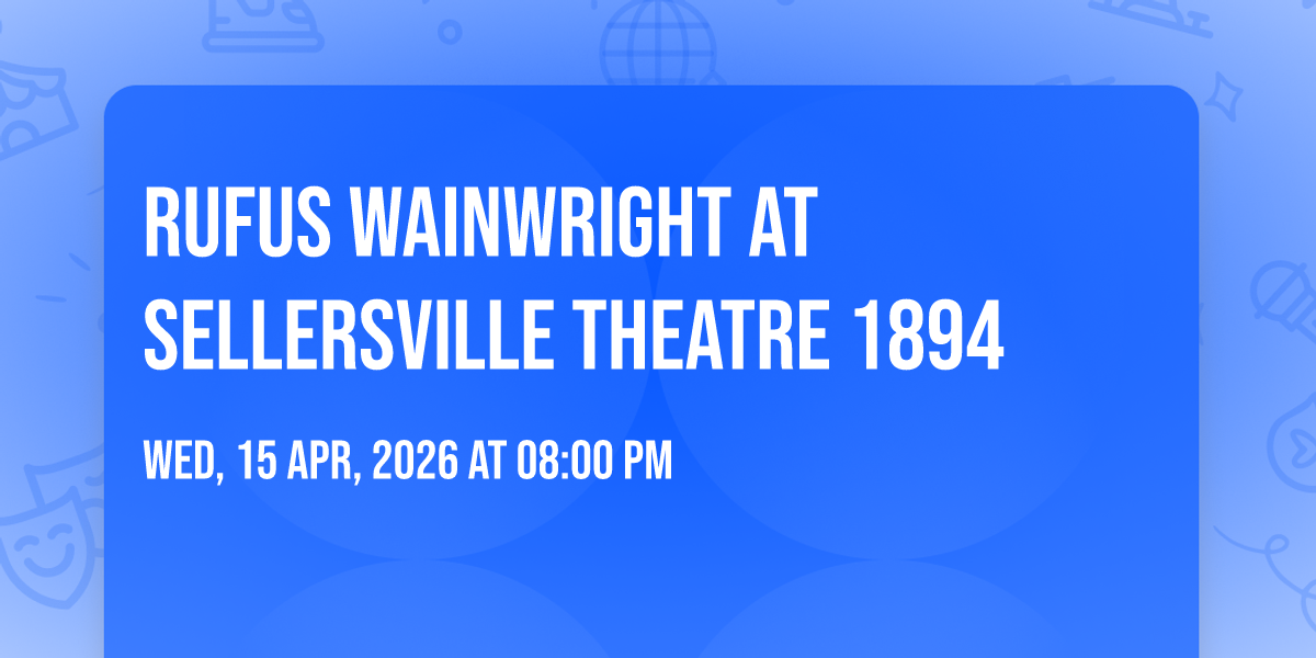 - **Event Description**: 🌟 Step into a world of wonder at Rufus Wainwright at Sellersville Theatre 1894, where extraordinary moments await! 🏛️ Located at Sellersville Theatre 1894 in dynamic Sellersville, PA, this event will become the talk of the town. 📅 Join us on April 15th, 2026 at 08:00 PM for a celebration that defies the ordinary. ✨ This curated experience brings together the best of entertainment, culture, and community spirit. Every detail has been thoughtfully planned to ensure an unforgettable experience for all our guests. 🎯 Take advantage of this opportunity to be part of something special.  🎊 Early registration is recommended as space is limited!