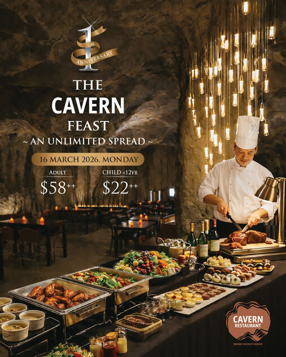 Celebrate with The Cavern Feast: An Unlimited Spread at Cavern Restaurant, Singapore’s only restaurant-in-a-cave concept by TungLok Group.