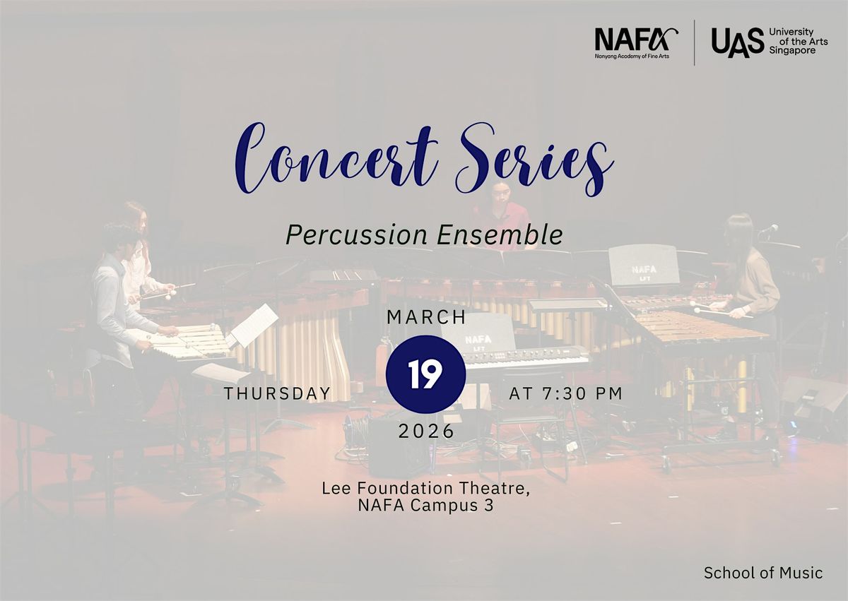 Under the direction of Mark Suter, with Assistant Director Derek Koh, the NAFA Percussion Ensemble presents The Inexorable Motion of Time — a dynamic programme exploring rhythm, pulse, and the passage of time.