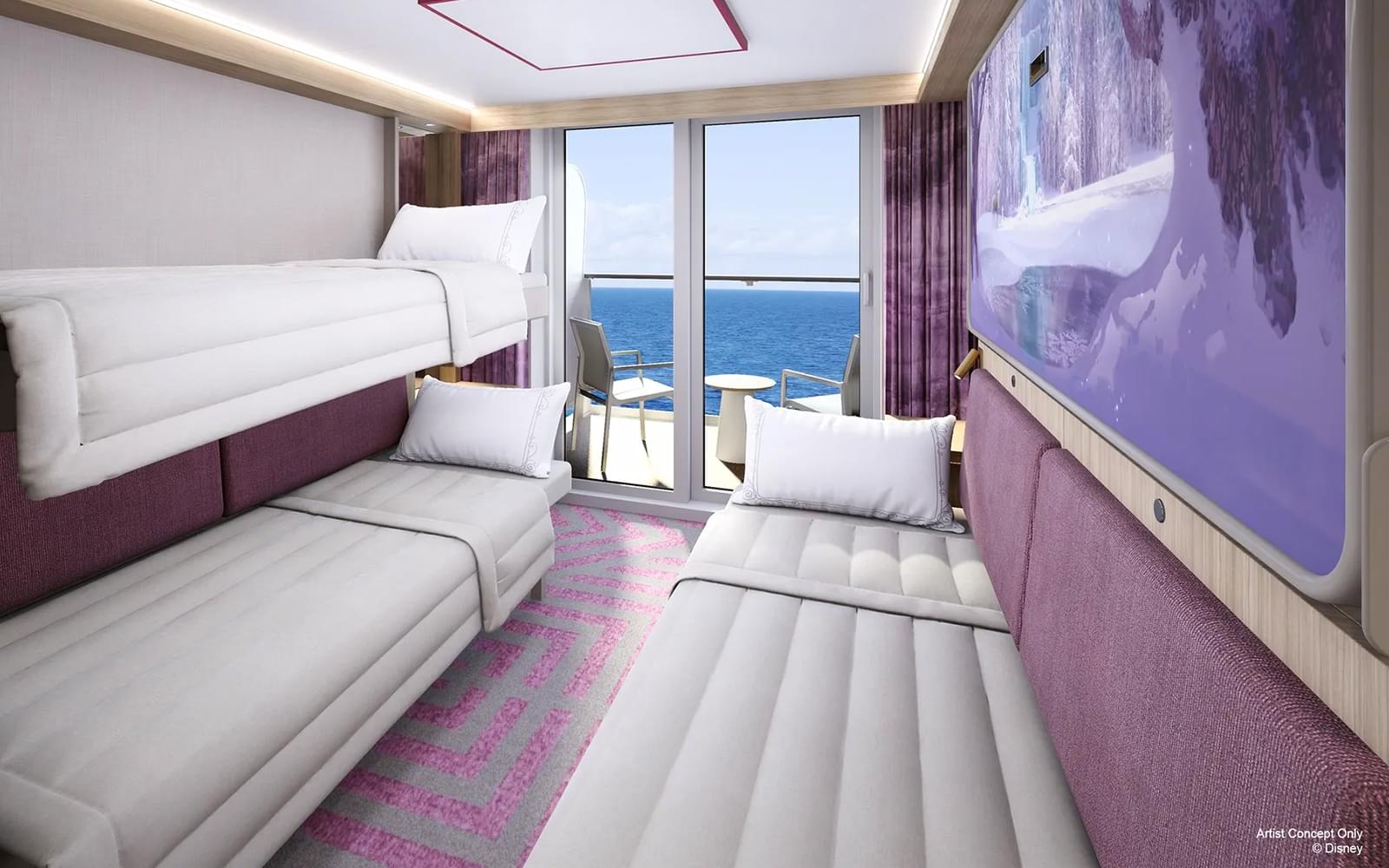 Boarding begins at 4pm in Singapore, where you'll step into Disney magic the moment you arrive. Settle into your Verandah Stateroom, designed for up to four guests, with ocean or themed views from a private balcony. Choose from four single beds or a Deluxe room with a queen bed and a sofa bed. Enjoy amenities like interactive TVs, split bathrooms, and ample storage for a comfortable stay. After settling in, explore the ship’s seven themed areas, filled with entertainment for all ages. Kick off your adventure with a welcome celebration at the Disney Imagination Garden. As the evening unfolds, enjoy dinner at one of three rotational dining restaurants, each offering immersive storytelling and a variety of cuisines. End the night with a Broadway-style show and a fireworks display at sea.