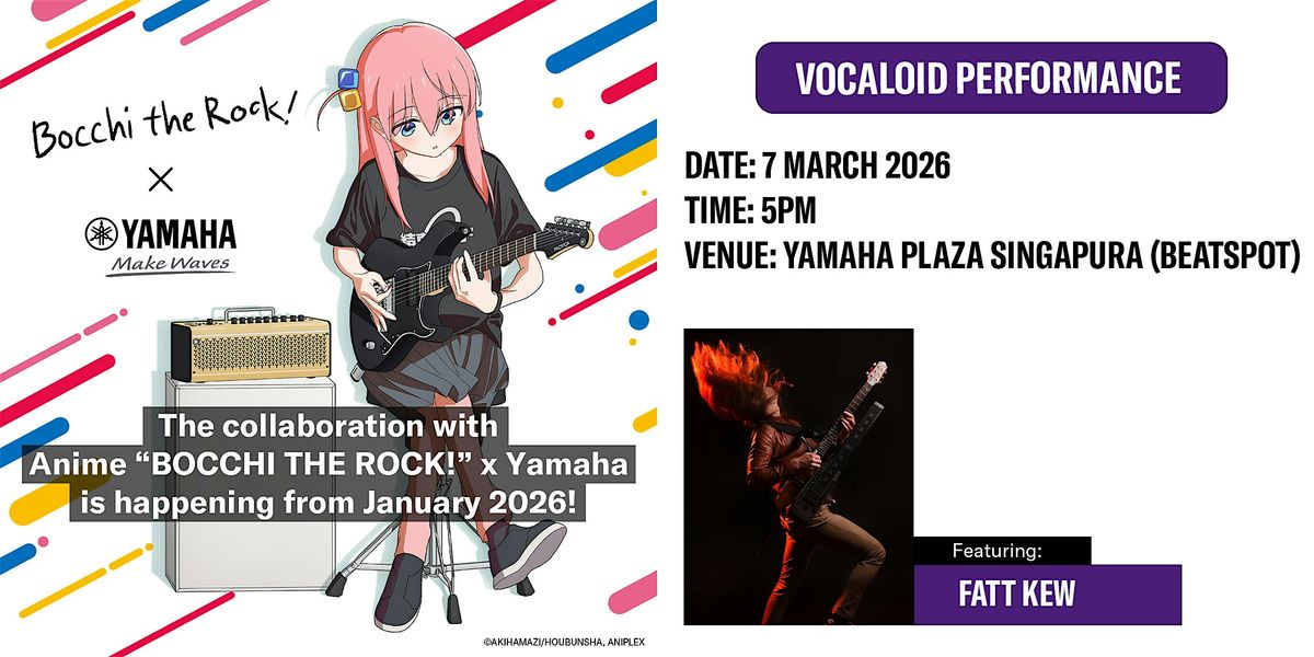 - **Event Description**: Experience a unique twist to your favourite Anime Songs!About this EventEnjoy a unique Vocaloid performance brought to life by Fatt Kew, the incredible one-man band who blends live performance and digital vocals.
