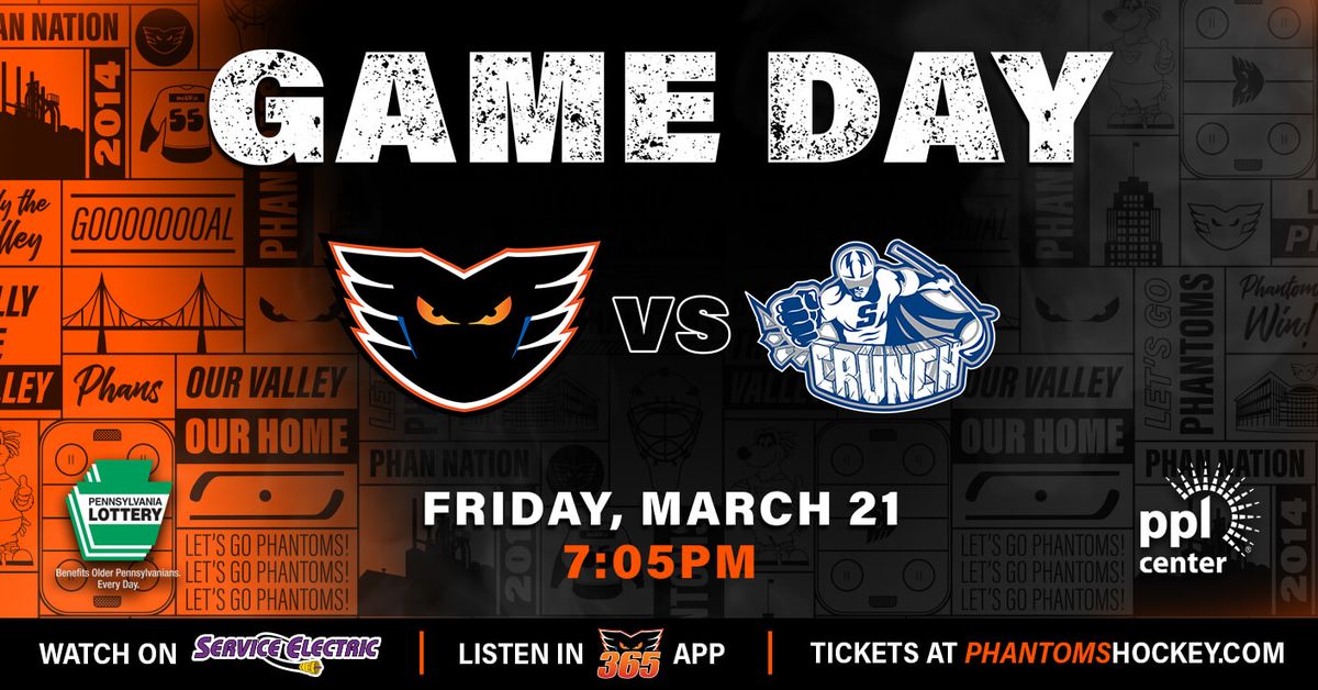 - **Event Name**: Lehigh Valley Phantoms at Syracuse Crunch at Oncenter - Upstate Medical University Arena