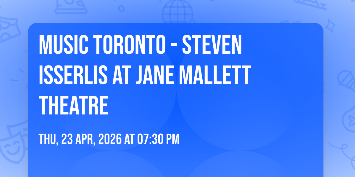 - **A:** Music Toronto - Steven Isserlis at Jane Mallett Theatre takes place on Thu, 23 Apr, 2026 at 07:30 pm to Thu, 23 Apr, 2026 at 07:30 pm at Jane Mallett Theatre, 27 Front St E., Toronto, ON M5E 1B4, Canada.