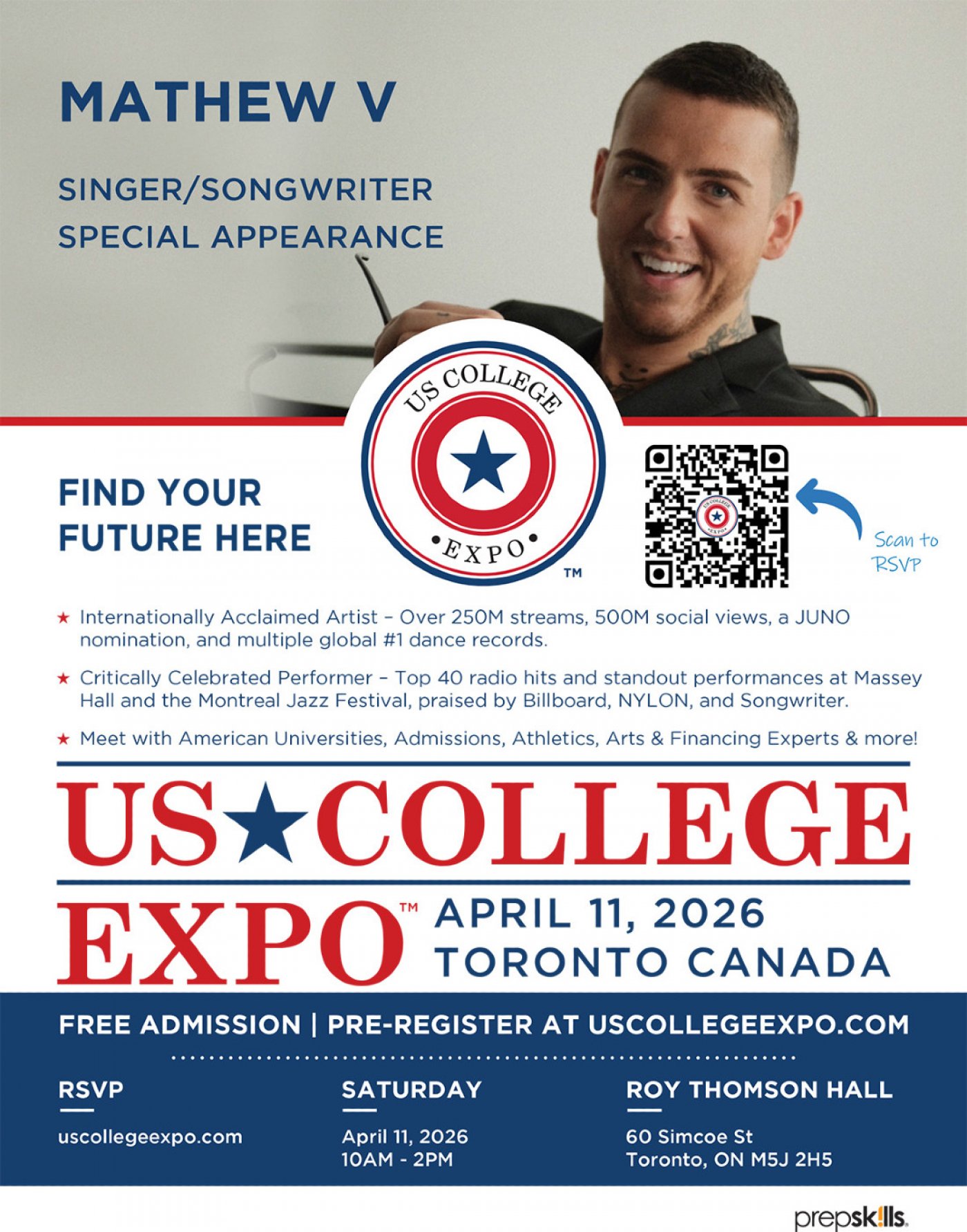 Join us on Saturday, April 11, 2026, at Roy Thomson Hall for a one-day event tailored for students and families exploring US college and university options.