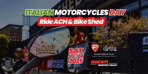 - DROC Ride to ACH & Italian MC Day at BikeShed is hosted at "13891 Red Hill Ave, Tustin, CA 92780-4636, United States".