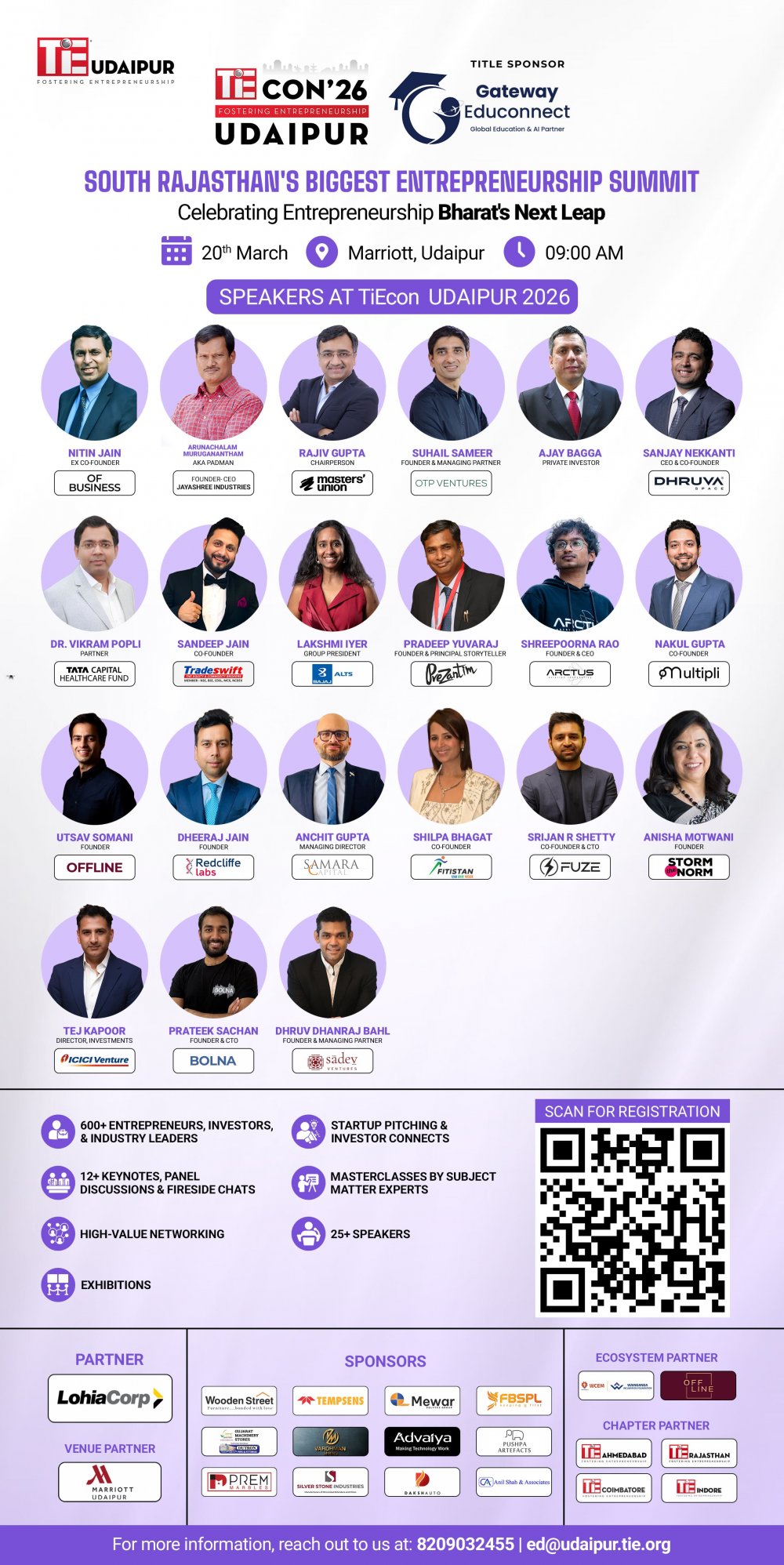 Tickets for TiEcon Udaipur 2026 can be booked here.
