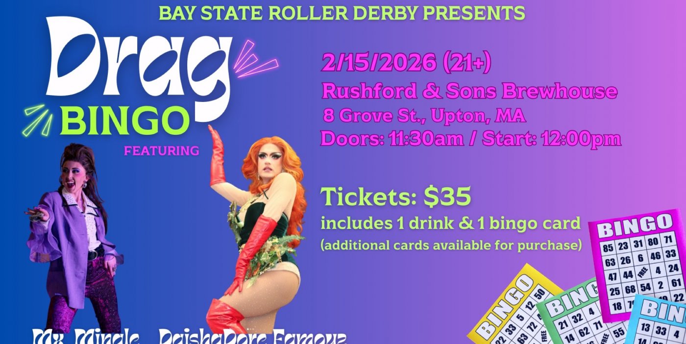 Bay State is back with another round of Drag Bingo! Compete against our skaters and fellow patrons for an array of fabulous prizes. This event will be hosted by two lovely drag artists: DaishaDore Famouz and Mx. Mingle. Bring friends! Bring cash! Bring bingo daubers!