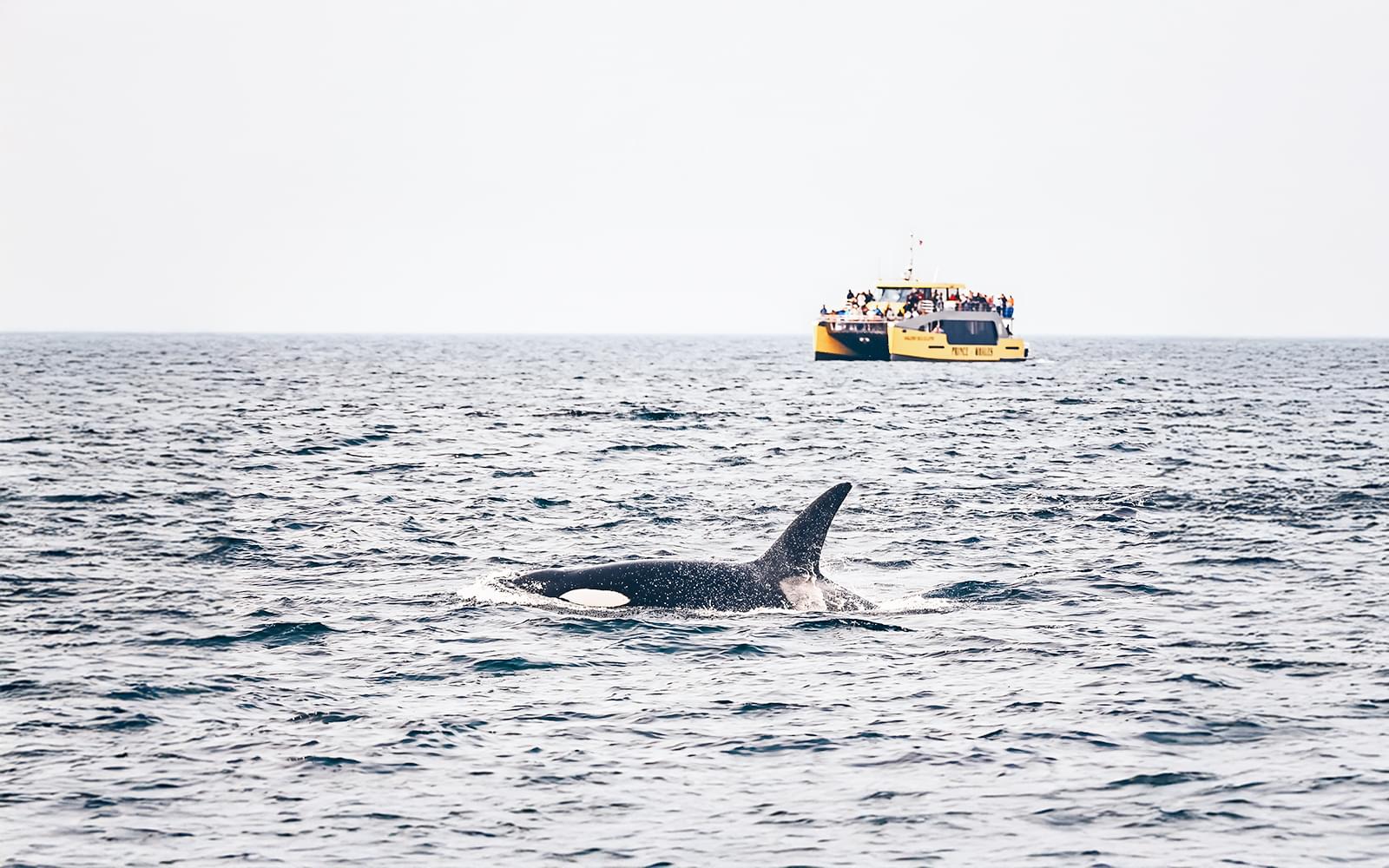 Spot whales and marine wildlife on a cruise from Victoria, guided by marine naturalists aboard a comfortable covered boat.