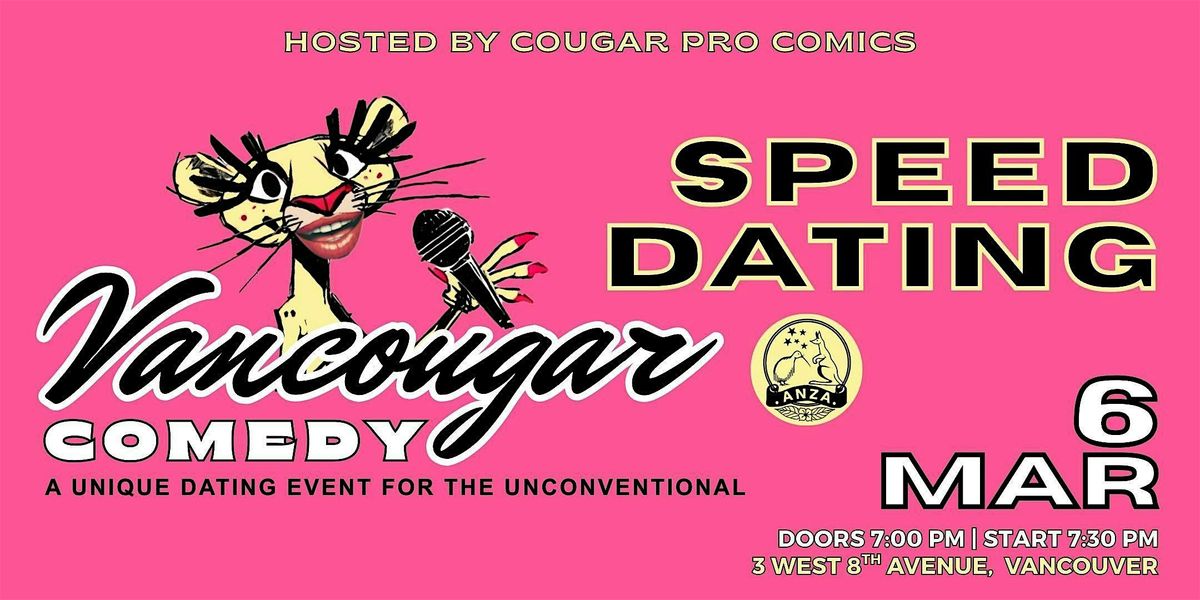 - **Event Description**: Flirty, fun, speed dating with pro comic hosts! Real laughs, no apps, no swiping. Meet people in-person, the way nature intended.About this EventVANCOUGAR COMEDY SPEED DATINGA one-of-a-kind event keeping things fun, flirty, and free of awkward silence (you’re welcome). Designed for sophisticated Women ages 40–59 and Men ages 28–42, this event blends laughter, light-hearted fun, and a touch of nostalgia.Forget the apps, swipes, and endless messages. This night is entirely unplugged! No smartphones and no digital match cards. Just you, genuine face-to-face moments, and a room full of people ready to mingle for a little fun or something meaningful.WE ARE KICKING IT OLD SKOOL:If you want someone’s number, you’re going to have to do it like they did back in the day:With a pen.On paper.Using your actual handwriting (cursive not required).Share your contact information, only if you want to, just like back when connections were simple, intentional, and real.WHAT TO EXPECT:A welcoming room of open-minded singles who can flirt without using emojisComedian hosts who will keep the vibes funQuick, fun mini-dates that feel more like playful chats than interviewsZero digital distractions, zero pressure, 100% real connectionThe thrill of someone whispering, “Can I get your number?"A possibility for new connections, new stories, and maybe even a new romanceBecause sometimes the best way to meet someone new is the old-fashioned way.This isn’t your typical speed-dating event. Whether you’re looking for love, a laugh, or simply a reason to do something different, this night is your chance to meet someone authentically. Join us for a retro-style night built on real vibes, real laughs, and real eye contact.All fun, no pressure. Limited tickets so grab yours before they’re gone!CURIOUS ABOUT SPEED DATING BUT NOT READY TO COMMIT?We undestand committment can be scary so we have limited tickets for Non-Daters. Non-Daters will not be watching the speed dates but you will have an opportunity to catch some comedy and learn about the show and maybe you'll date with us next time! There will be a designated show audience area.https://youtube.com/shorts/0OxZNmq-oKs?si=I5EWfmtjzcfEbvbSAgenda🕑: 07:00 PM - 07:30 PMDOORS OPEN - Vancougar Comedy Speed DatingInfo: Doors open to check in for the event. Name tags will be provided with a cheat sheet list of questions you can ask to keep the conversations fun.🕑: 07:30 PM - 08:00 PMINTRODUCTION to Vancougar Comedians via Opening-Stand-Up SetsInfo: Hosts will describe how the event will run and will do so with good old fashion, light hearted humour.🕑: 08:00 PM - 08:30 PMMINI DATES  - 1st ROUNDInfo: 4 minute Mini Dates begin.🕑: 08:30 PM - 08:45 PMBREAK or MINGLEInfo: A little break for daters to freshen up, get refreshments and mingle with whomever they pls🕑: 08:45 PM - 09:15 PMMINI DATES - 2nd ROUNDInfo: Continue with 4 minute Mini Dates.🕑: 09:15 PMCOMEDY SPEED DATING WRAP UP and SOCIAL/MINGLEInfo: Hosts closing the show with some jokes. Social time to mix, mingle and be single!