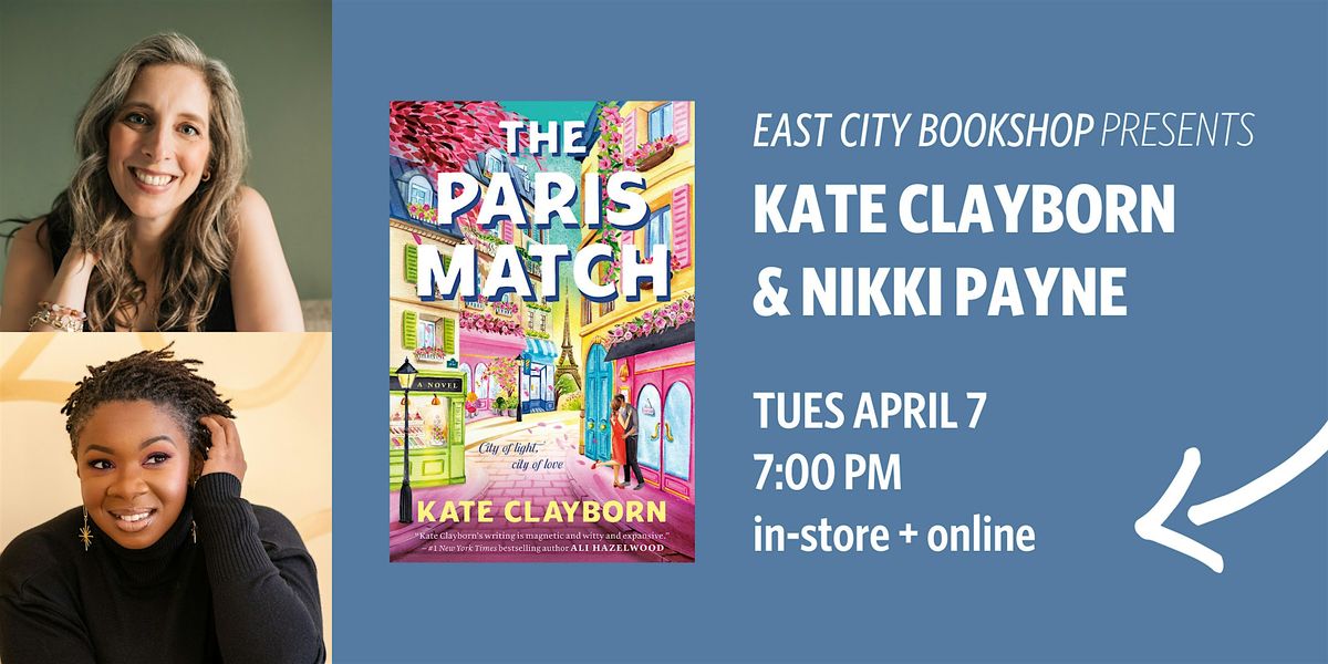 East City Bookshop welcomes Kate Clayborn to discuss her next novel, The Paris Match in conversation with Nikki Payne.