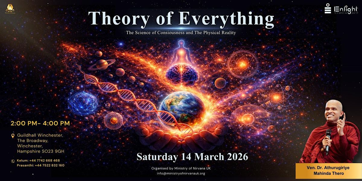 - **Event Description**: Join us at the Winchester Guildhall for a transformative, hands-on, experience where Buddhist philosophy meets Science.About this EventThe Science of Consciousness and Physical RealityWhat if the world we experience is not built from fundamental “things,” but from dynamic patterns of aggregation that give rise to the appearance of entities, objects, and even the self?This public talk presents a new integrative framework — Aggregation Leads to Effect — to explore how physical reality, matter, and conscious experience may emerge without relying on intrinsically existing entities. Drawing from contemporary physics, cognitive science, and deep insights from Buddhist philosophy, the talk challenges the common assumption that reality is composed of discrete, independent units.What this talk explores?Why the mind naturally perceives the world as made of objects and entitiesHow aggregation and interaction can generate stable, entity-like effects without fundamental unitsWhat modern physics suggests about matter, structure, and fieldsHow cognitive processes shape perception and objecthoodHow Buddhist philosophical frameworks — particularly dependent origination — anticipate non-entity, process-based views of realityWhat this means for understanding mind, consciousness, and physical realityRather than proposing a mystical or metaphysical “Theory of Everything,” this talk offers a conceptual lens — grounded in science and philosophy — for re-examining how reality appears, how it is structured, and how consciousness participates in this process.Who is this event for?Scientists, researchers, and students interested in foundational questions in physics and consciousnessPhilosophers and thinkers exploring ontology, emergence, and process-based views of realityPractitioners and students of Buddhist philosophy interested in dialogue with modern scienceAnyone curious about the relationship between mind, matter, and the nature of realityNo prior technical background is required. Complex ideas will be presented clearly, with visual illustrations and intuitive examples.?️ SpeakerVen. Dr. Athurugiriye Mahinda TheroA researcher and a teacher working at the intersection of physics, philosophy, and Buddhist thought, with a focus on consciousness, ontology, and the nature of reality. He is a former research scientist at the Australian National University, with a PhD from ANU, is now dedicated to helping many people around the globe.? VenueKing Alfred Chamber, Guildhall Winchester, The Broadway, Winchester, Hampshire SO23 9GH
